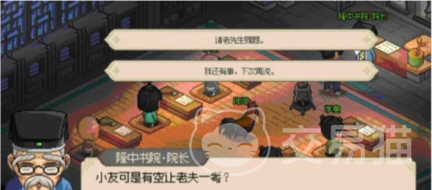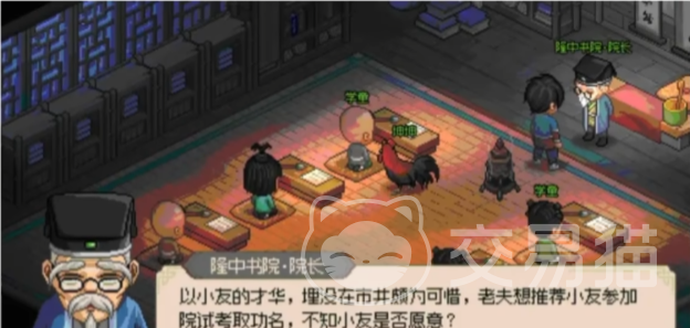 如果没通过的话,还是可以重新再次考试的,顺利通过之后,就再去大梁城,这里有一个太学院,找到太学院的院长,接下来就是跟他对对子了,同理5次之后可以参加乡试,满分通过就成为解元了,然后是参加会试,目前殿试阶段还未可知。