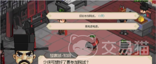 接下来还是在楚襄城当中,去寻找一下知府,知府会向大家确认一下是不是想好要参加院试了,然后就是进行院试,院试内容也是对对子,院试过了三日之后,就会接到一封飞鸽传书,接下来大家如果是顺利通过了考试的话,就会得到秀才的名号了。
