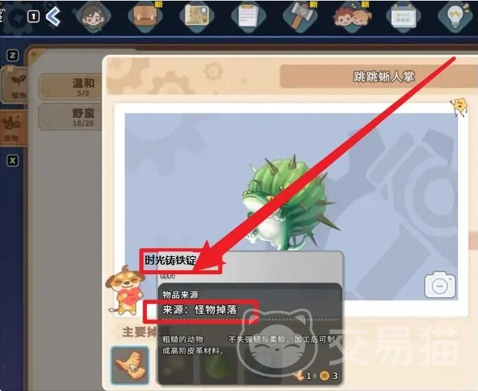 最后一个方式就是通过击杀怪物的方式来获取了,可以在界面找到右下角一个点“生物”的选项。点击之后可以看到一个“跳跳蜥人掌”选项,这个就是大家需要击杀的怪物了,可以直接选择击杀这种生物,难度并不是很大,击杀之后就会掉落铸铁锭。