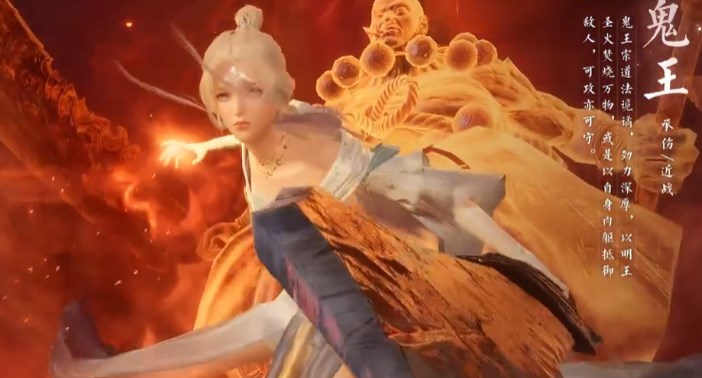 明王降世,怒气满100后就能使用,可以瞬间恢复一定的气血同时造成伤害并化身明王,明王状态下是免控的,而且会持续回血,移速提升其他基础技能效果强化,持续12秒。技能升级后还会提升最大血量。这个鬼王的核心技能之一,玩家需要时刻注意自己怒气,尽量多维持在明王状态爱,这样爆发才高。