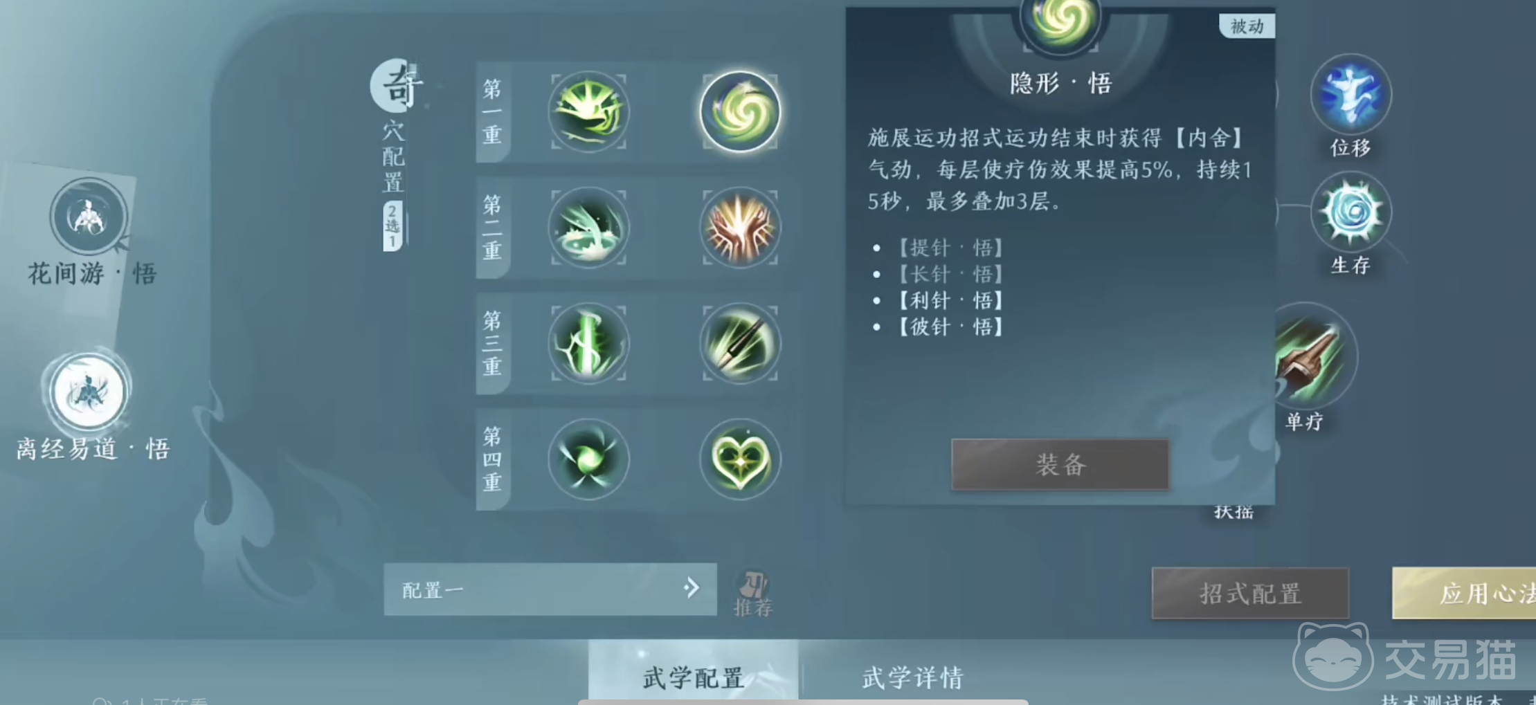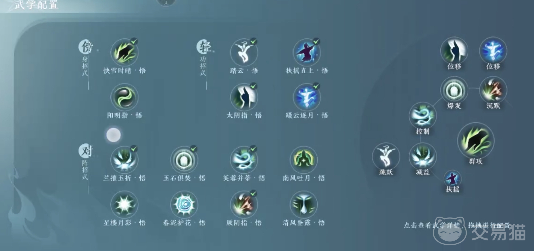 再就是关于万花技能的介绍。万花的技能主要是以太阴指、清风垂露、毫针、星楼月影以及春泥护花为主。太阴指的技能主要是提高移动速度,当玩家被地方压制或者是在即将被控的时候就可以使用太阴指拉开距离,提前防范;清风垂露技能主要是用于解控,所以当被敌人控住的时候就可以使用清风垂露解控,以免处于被动地位;春泥护花可以为队友带来增益效果,同时能够提升自身的免疫。