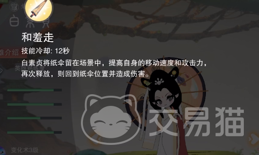 和羞走:是第1技能,在释放技能之后可以迅速的在5秒内提升移动的速度,还有攻击力。等到再一次释放时又会回到原先的位置。