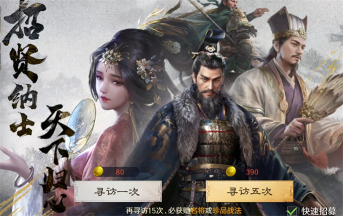 在战斗系统方面,游戏采用了回合制策略战斗模式。玩家需要根据敌我双方的阵容和地形,合理安排武将的站位和战法。战法分为指挥、主动、被动、追击四种,每种战法都有其特定的效果和发动时机,玩家需要精心选择以适应不同的战场情况。
