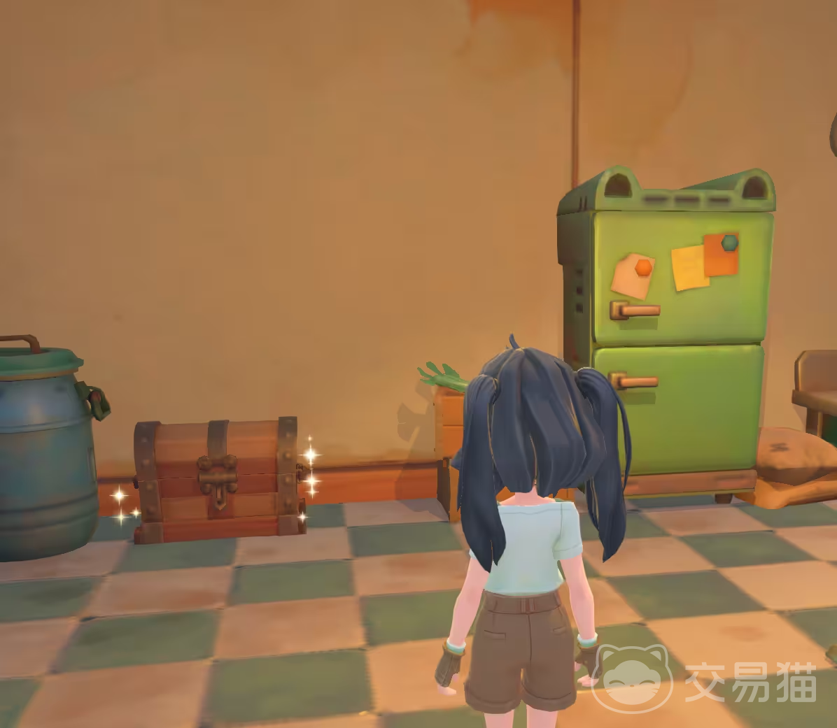 目前有箱子的分布地方可以大致分为三个地方,一个是镇子里面的箱子,另一个是镇子外围分布的箱子,最后就是沙漠里面有的箱子。先来说镇子里面的,首先是在蓝月亮驿站,进门右转的厨房里面有一个箱子,打开之后可以食材,比较随机,可能是蛋卷或者是辣椒,小技巧就是在进门的时候可以先和老板欧文交流一下,也能够得到部分食材。