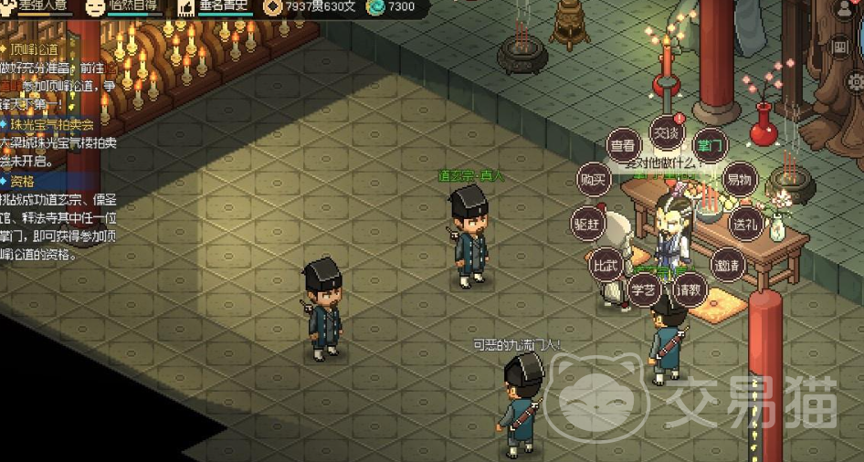 如果玩家的练度比较高,战斗力较强,也可以直接和白云观中的NPC展开对战,将这些NPC击败后也可以直接拿走‘软垫’,但是击败白云观的NPC会增加白云观对玩家的仇恨度,日后玩家再进入到白云观可能会被NPC主动攻击,如果玩家日后还需要和白云观的NPC交互,可以给白云观进行纳贡可以将白云观的好感度变回友好。