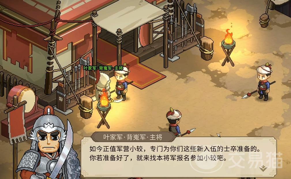 加入叶家军后便能直接开启的任务,玩家只需在切磋中赢下所有士兵,便可从主将那拿到奖励。本次切磋难度比较小,只要角色等级不太差都能较为轻松地赢下,同时还能学习到叶家军的武功。