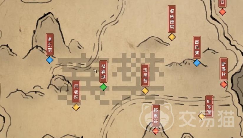 野狼谷的位于楚襄城下方,玩家在开图后可直接在地图上点击野狼谷的点位,便能移动至野狼谷了。若是玩家还没开启野狼谷这个区域,可先在楚襄城随意晃晃,便会有一名官差找上玩家,并为玩家带来一个关于狼毫的小支线,同时为玩家开启野狼谷的地图。