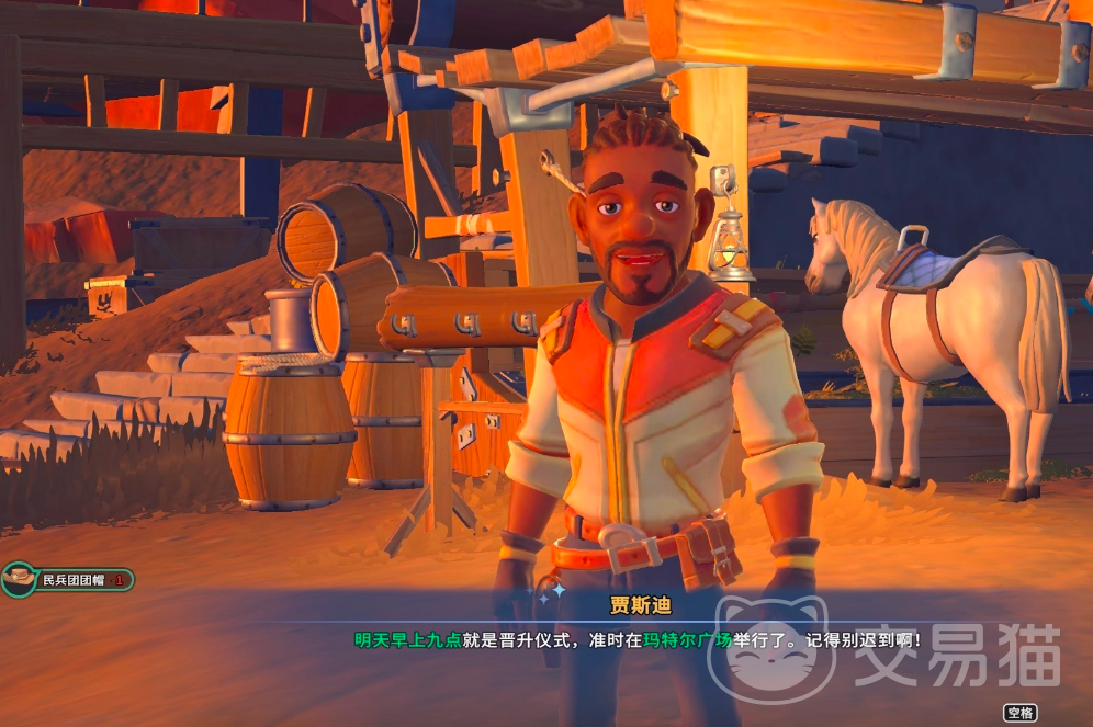 民兵团的团报需要在第二天早上9点左右交给贾思迪。而且9点左右的话会在广场当中举办晋升仪式,最终小黑会被评为民兵团团长,等待仪式完成后,玩家就可以获得民兵团勋章了。整个任务攻略的难度并不是很高,但需要玩家合理的安排时间来更快速的制作帽子。在制作帽子的原料获取上途径还是比较简单的,小编在上述文章当中已经进行了相应的说明,小伙伴们可以尝试一下。