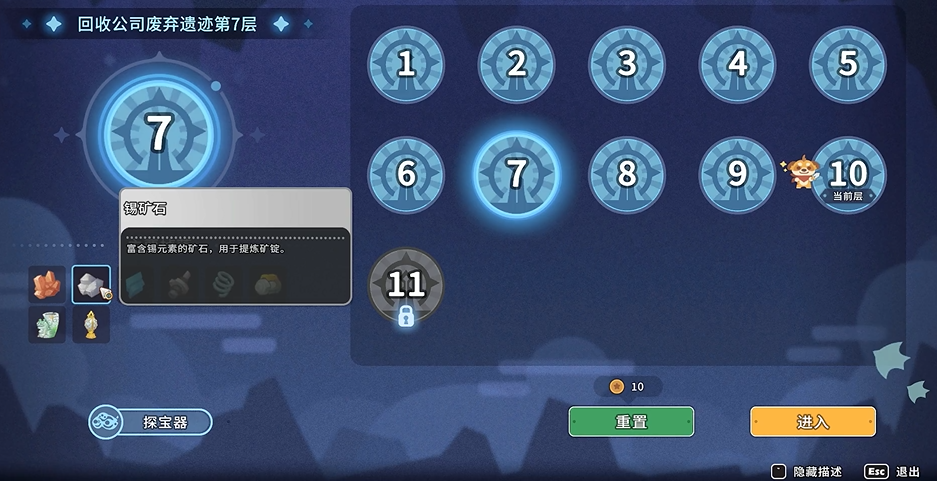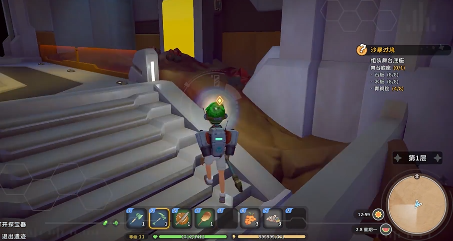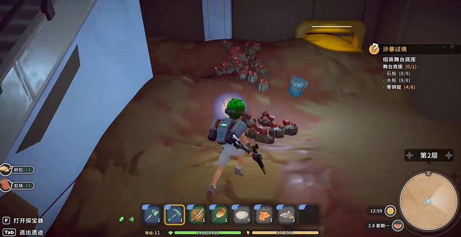 在去往矿洞的时候建议小伙伴们打开探宝器,这个可以帮助大家更好的采集材料,而且小伙伴们在打开探宝器之后会发现一个绿色的箭头,小伙伴们跟随着这个箭头就可以去往另一个矿区了。