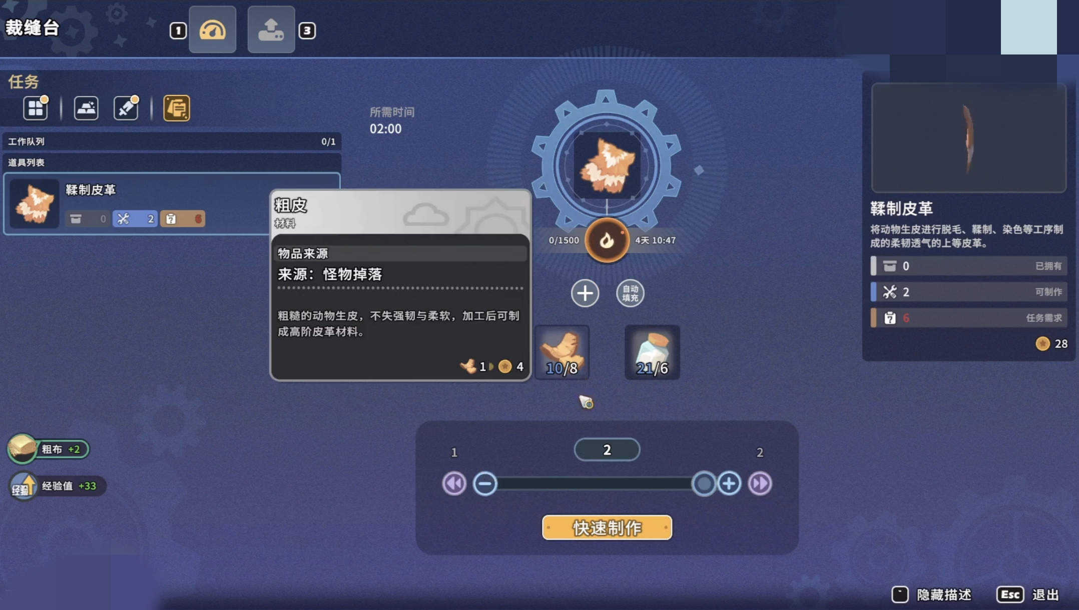 有了图纸之后,记得还要先准备一下要用到的制作材料,然后再去裁缝台进行合成。使用的合成台品质越好,防护服的防护等级也越高,所以想要防毒效果达到最好的小伙伴最好一步到位,直接使用最高级的裁缝台来制作。
