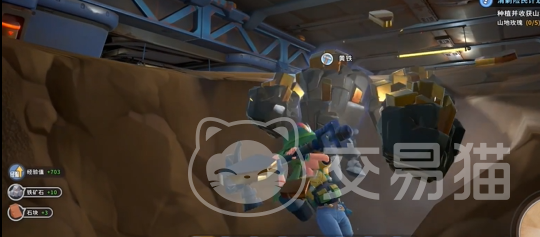 在这里很多小伙伴或许只会把土堆上面的石块给敲碎,其实要提醒大家的是下面的这些黄土都是可以挖开的,黄土里面还藏着不少材料,很多来过的小伙伴就是因为不知道这一点,导致后续知道了之后还要重新来探索一番。