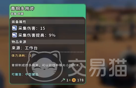 制作高等级的斧头,可以在砍伐树木的过程当中获取更多木头。通过给斧头进行强化,可以刷出砍树增益的词条,这样我们砍树也可以获得较多数量的木头。特别是获得了青铜斧头之后,从家园出门右拐,来到山坡上砍伐树木,是可以获得数量非常庞大的木头的。