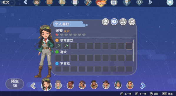 关于NPC好感度的话,米安、阿密拉、海蒂、埃尔西、格蕾丝、简(目前的话,只能进行对话,不能够送礼)、欧文、阿尔维奥、齐衡、梅丁、房时渺(暂时也不能送礼物)、欧内斯特(暂时也只能日常对话,不能够送礼)。