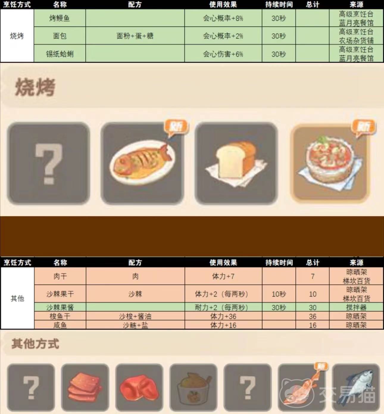 1、爆炒类:这款食物主要是从中级烹饪台获取,包括香菜煎蛋、蛋包饭、番茄炒蛋、蛋卷、葱油饼、糖醋鱼、糖醋排骨、疾风炒饭等;其中少部分也可以在蓝月亮餐馆购买,例如地三鲜和香菜肉饼。接下来小编给大家介绍几款常见的食物的配方。