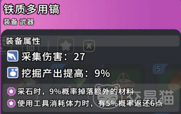 如果小伙伴们在探索的过程中看到某个地方有黄色的标记,那么就说明这个地方的矿产资源格外的丰富,大家此时就可以记下这个地点,在这里挖矿会事半功倍哦。除此之外就是要携带一把好用的武器了,小伙伴们在工作台上可以先制作出最基础的多用镐,随着挖矿次数的增多,这把多用镐会逐渐升级变成铁质、合金等材质,挖矿的速度也会变得更快。