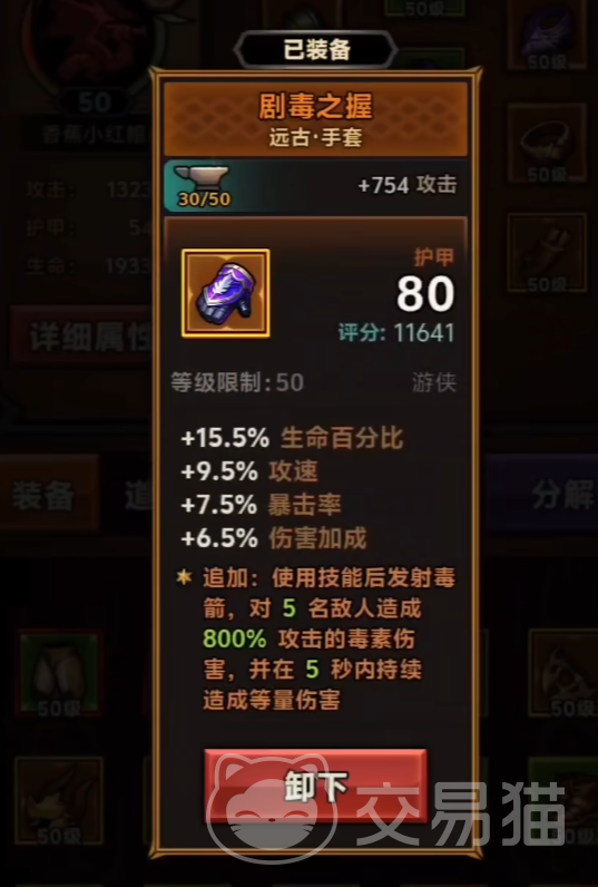 首先推荐剧毒之握这个手套,作为防具,它可以增加的攻击力也是很可观的,本身就可以提升角色的15.5%百分比的生命,另外还可以加9.5%的攻速,更厉害的是可以增加6.5%的伤害以及7.5%的暴击率。