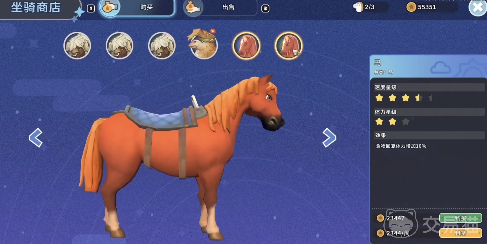 然后说下买这种方法。玩家可以在小镇里找到坐骑商店这个位置。这个店铺就是专门卖马的,玩家进入店铺找老板对话就能买马了。需要注意一点的是店铺并不是24小时营业。店铺在游戏时间晚上9点以后就不营业了。
