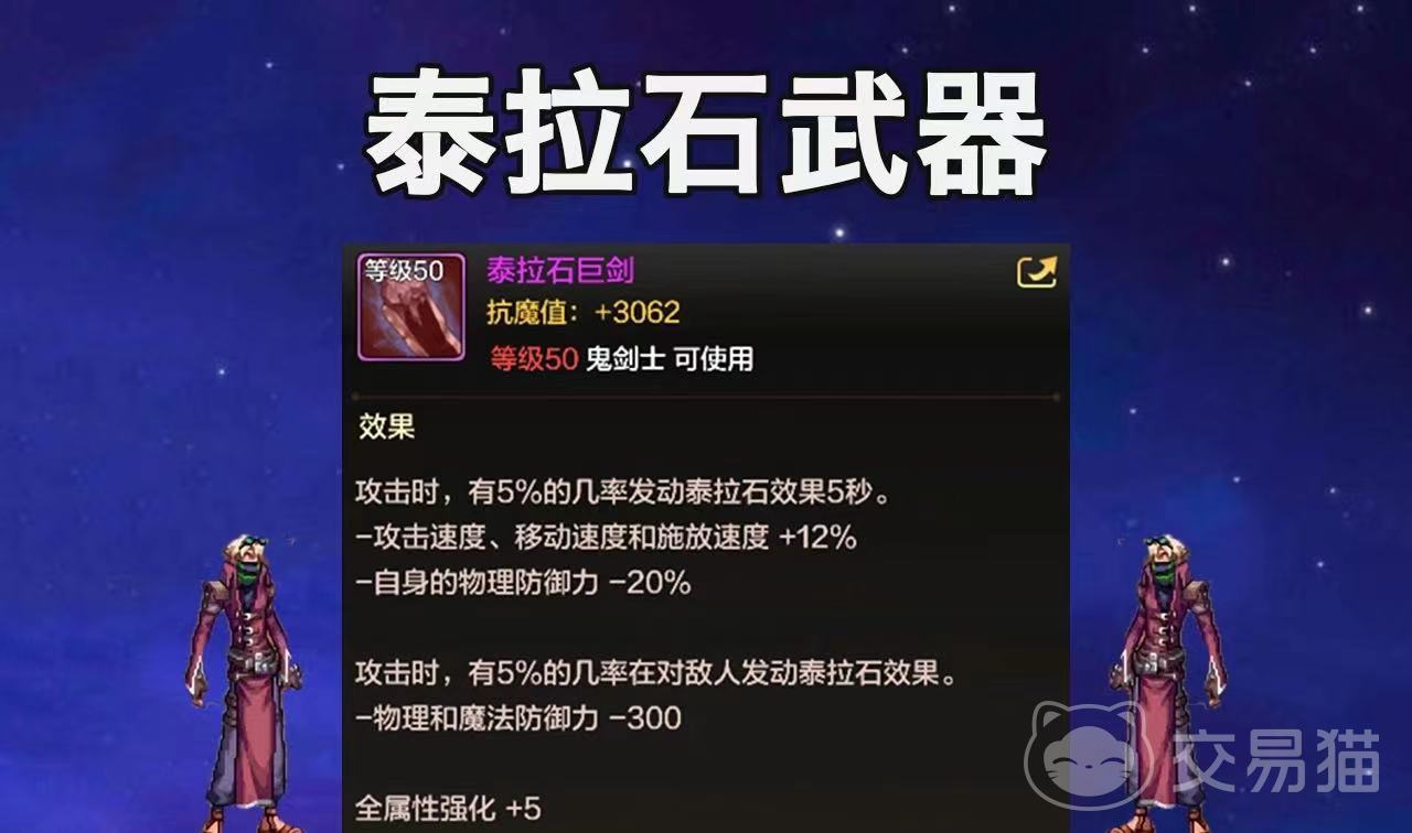 以上就是dnf手游泰拉石武器介绍的相关内容,这是一款非常适合的新手玩家的武器,对鬼剑士的职业角色,可以增加强大的攻击能力,大家可以通过文章的方法,来获得这个强劲的武器,来提高角色的实力,更好的与强大的敌人进行战斗。