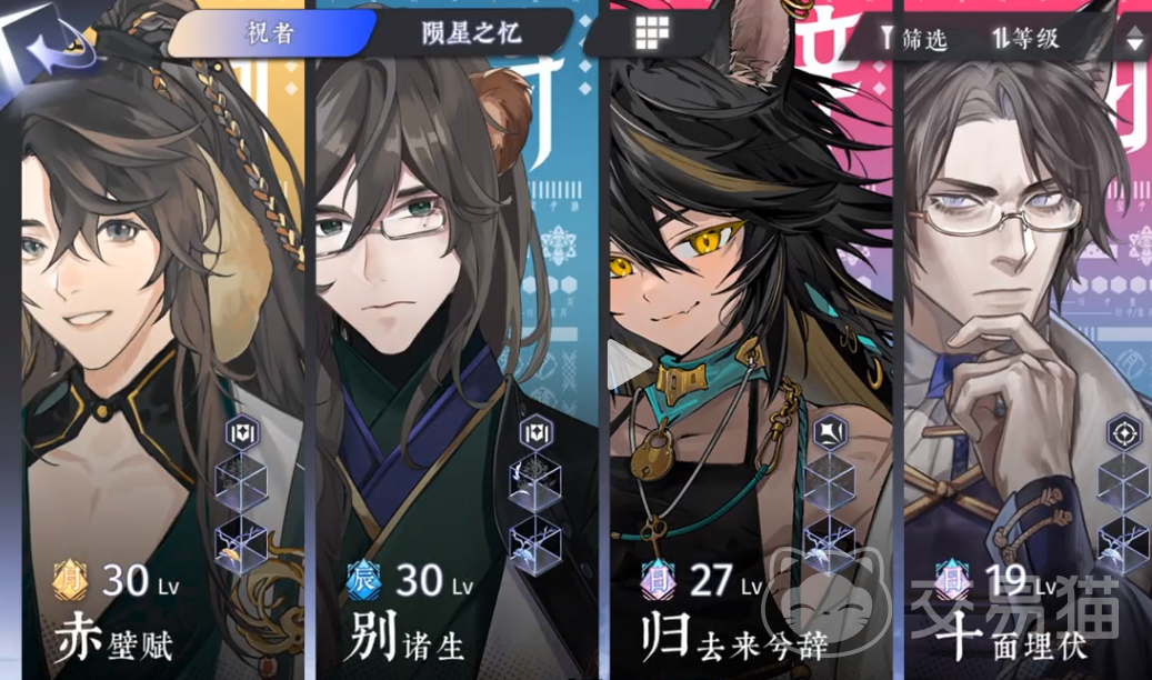玩家在游戏中需要分别挑战【赤壁赋】、【别诸生】、【归去来兮辞】、【十面埋伏】以及【陨星之忆】的内容,从而才能获取经验,游戏内不同的角色又以其稀有程度分为了【日】【月】【星】【辰】,玩家需分别挑战这些不同难度的副本,每一次的战斗玩家都会获得不同的经验值,难度越高的副本玩家获得经验越多,玩家可以重复的挑战同一个关卡来获得等级增长,在战斗的同时,不只是玩家的经验值会增长,参战角色的等级也会提升。