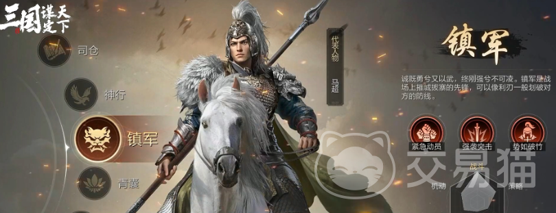 三国谋定天下的策略性是比较强的,几乎每个职业都有具体的玩法,比如说司仓这个职业的优势在于资源收集效率提升,在中后期具有很高的价值,但是在前期就稍微弱一些,而前期就能发挥出战斗能力的便是镇军职业。