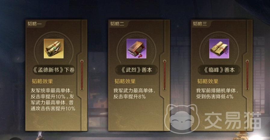 在谋略的配置上,依照推荐配置即可,通过孟德新书下卷提升吕布的反击概率,紫色谋略也应围绕反击率进行搭配,同时还要适当增加一些提高坦克能力的谋略,如此即可确保防御的充足,这套战术旨在通过吕布频繁的攻击和反击来反复激发万夫莫当以及勇冠三军,从而达到输出最大化的目的。