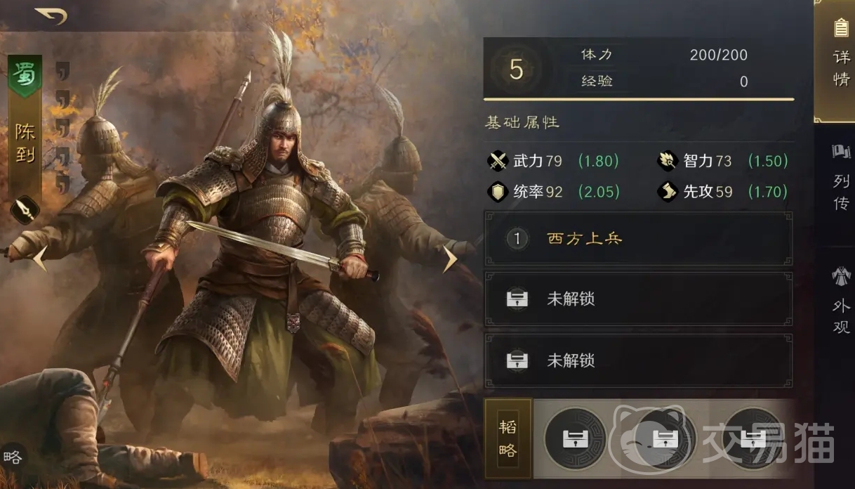好了,以上便是三国谋定天下陈到武将图鉴的全部说明,其实大家在进行游戏体验的时候,对于武将做一个提前的了解可是非常关键的,而小编在文中也为大家做出了详细的说明,朋友们如果喜欢,觉得它们能带来帮助,就抓紧去试试吧。