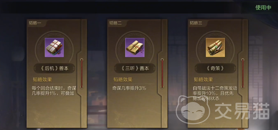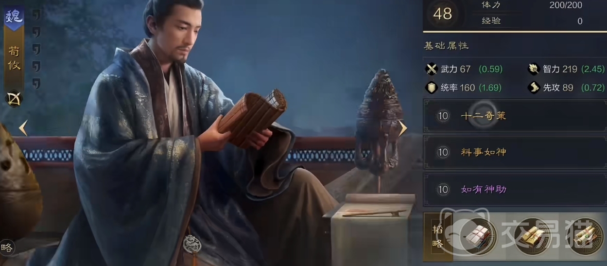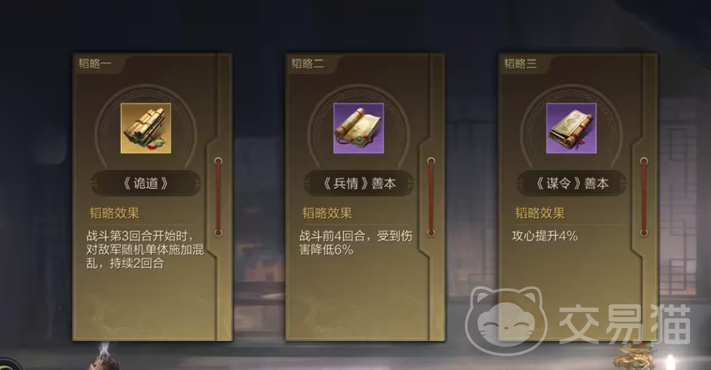 三位角色各自的金书有即要带,荀攸带奇策、临时、机动;郭嘉带十胜论、临时、鬼谋;贾诩带诡道、兵情、谋令。