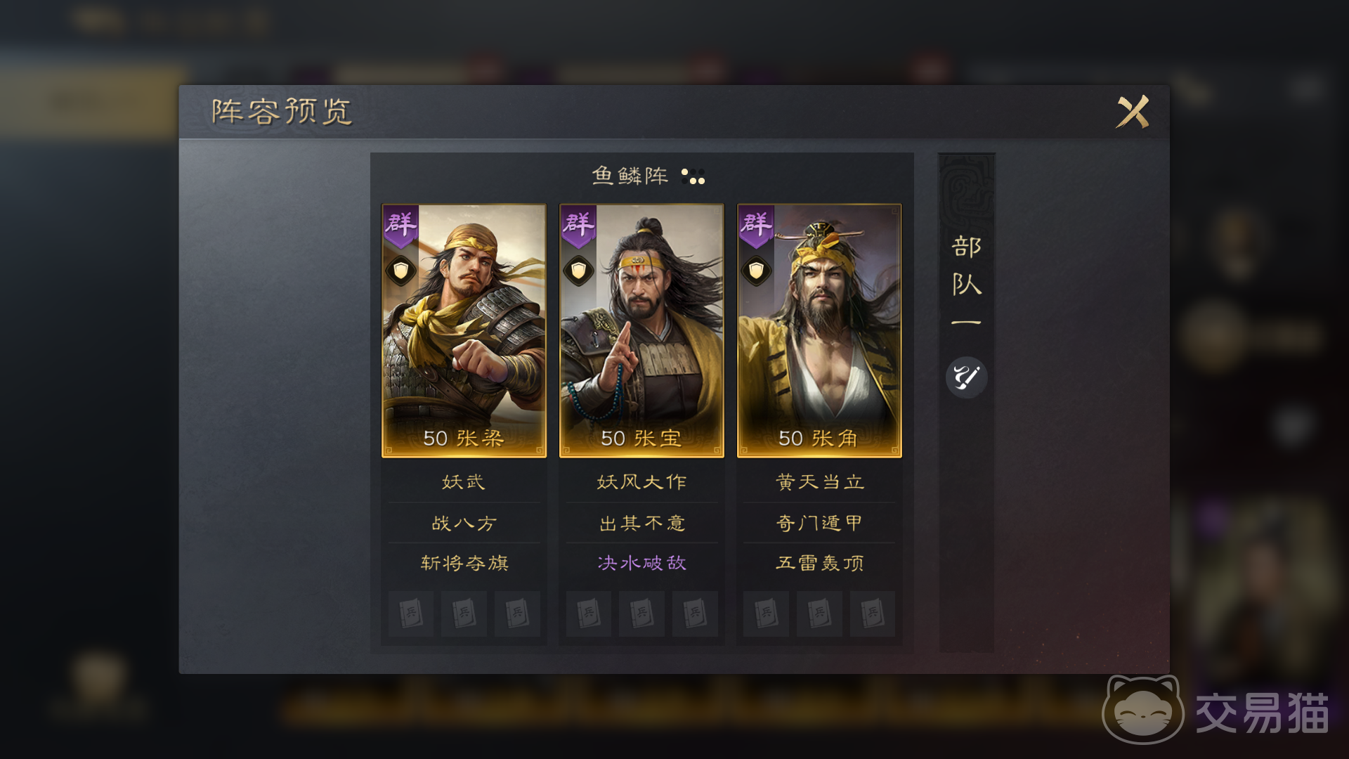 当然这三个战法不一定在同一名武将身上,可以在阵容中进行合理调配。而最合适的阵容就是张梁、张宝和张角这一套搭配方式。决水破敌无论是给张梁还是张宝选择都是可以的,再加上自身自带战法,施加多种异常状态,可以大幅提升张角自带战法和五雷轰顶造成的谋略输出。张角作为这三人中智力最高的人物,自然要选择奇门遁甲和五雷轰顶,这样一来张角整体输出已经达到了真正顶尖的程度。