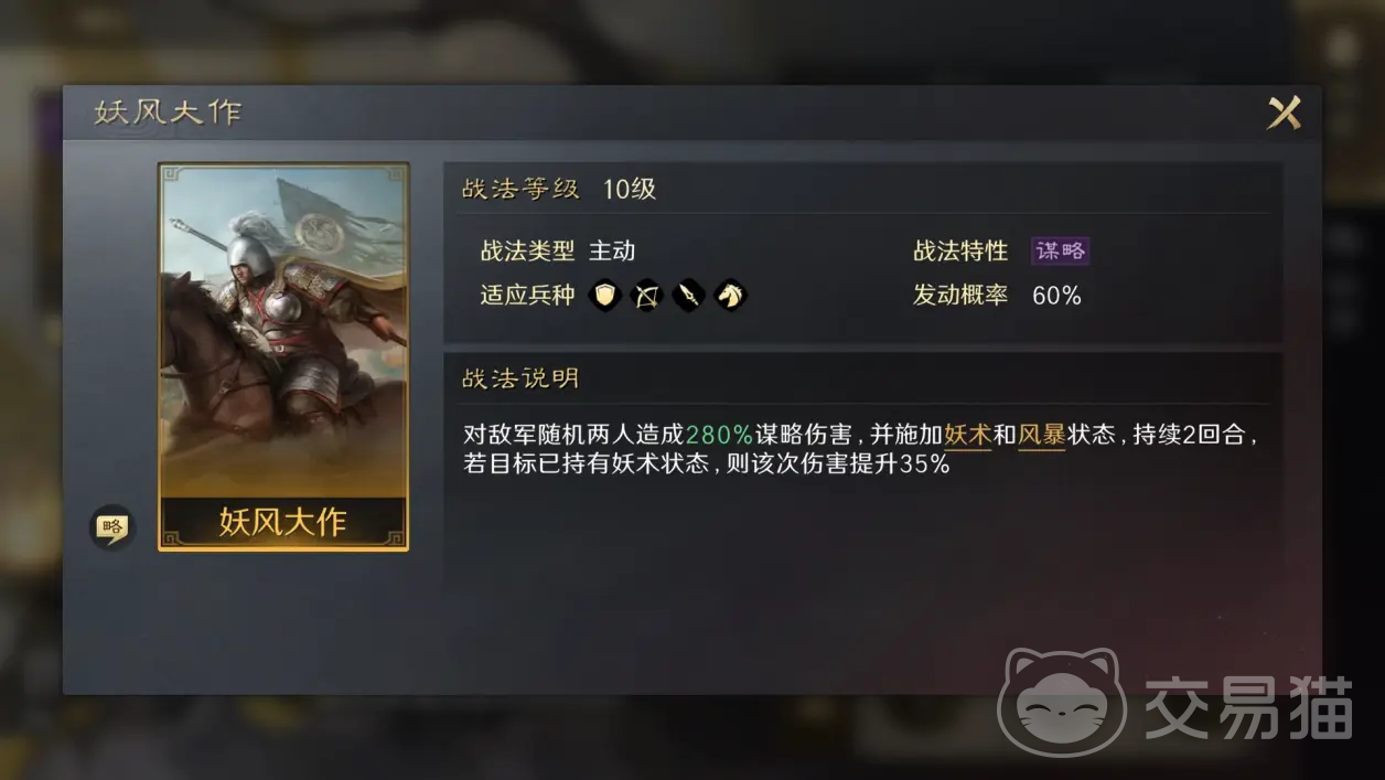 要想做到正确搭配,首先要了解自身能够带来哪些效果。出其不意作为主动型谋略战法,可以对敌方随机一个单体目标造成倍率极高的谋略伤害,如果目标身上带有负面状态,则伤害值还能进一步提升。大家可以通过招贤纳士,群雄逐鹿这两个卡包寻访来获得。从效果可以看出,非常适合与那些带有各种负面状态的武将或阵容一起出战,这样打出的单体伤害能够给对方造成沉重一击。