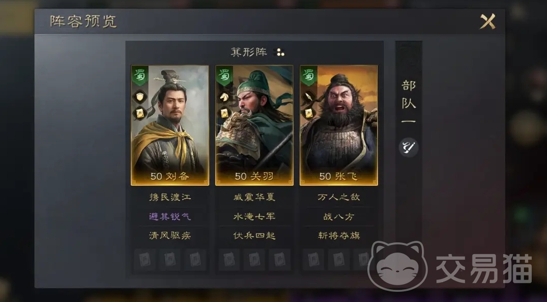 推荐的阵容搭配是刘备、张飞和关羽 ,这三位武将可激活桃园结义,在第三回合行动前,能驱散自身的一种负面状态,刘备可利用战法,并装备青囊急救来确保队伍的恢复能力,减少负面效果影响,张飞则可先手施加畏惧状态,从而提高关羽的主动战法发动概率,使关羽能更加稳定地输出伤害。