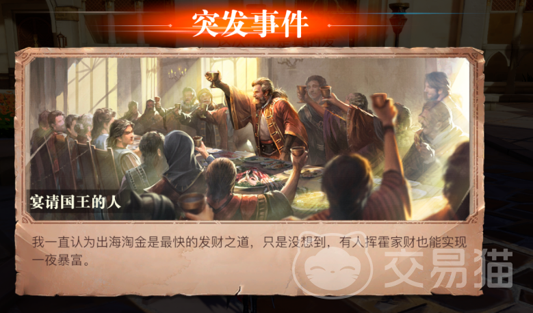 宴请国王的故事是在船长见闻录非洲历险记的部分,主要在荒诞故事第三章。事情的发生地在阿尔及尔,这里小伙伴们如果完成这个突发事件的话,能获得绑钻以及一些抗疲劳秘药的奖励。