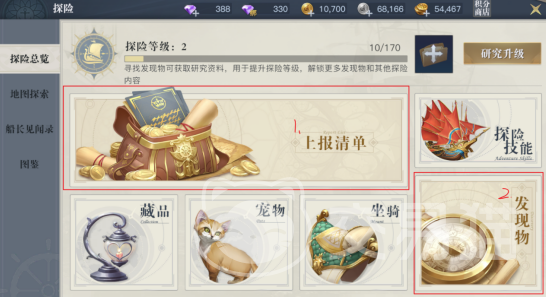 最后就是探险声望了,探险其实也就是收集图鉴,大家打副本如果比较劳累,闲暇时间可以点击界面的右下角,进入探险模式中,在这个模式里找到各种发现物就可以提升探险等级,等到一定等级后玩家就可以在邮件中获得探险声望函,也是一样能得到100点经验。