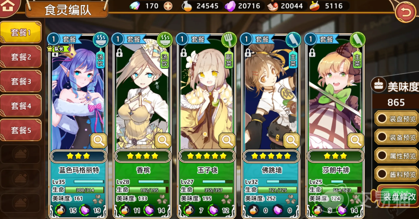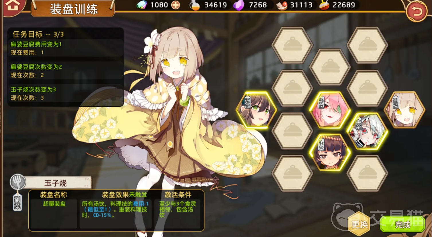 这边也直接给大家分享一个比较适合快速过关卡的队伍,有需要的可以直接使用,阵容组成有热香饼、北京烤鸭、凉粉、辣条和关东煮,这套阵容的厉害之处在于能在降低料理技费用的情况下提升主菜与头盘的料理技,热香饼的装盘技能为队伍中的甜品食灵提升料理技的释放次数;
