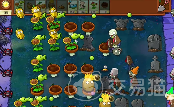 首先这个关卡属于是一个夜晚关卡,没有阳光掉落,关卡里会出现墓碑影响我们种植植物,而且在最后的时候墓碑还会直接有怪物出现,这也增加了大家通关的难度,所以在植物选择上我们就要下功夫,不能随便选两个植物。