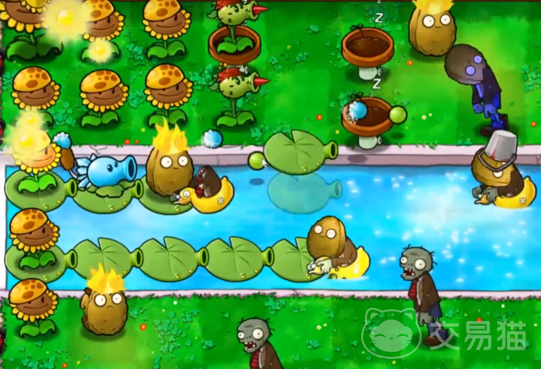 这几个植物可以有效针对上面两种僵尸和这局中的其他僵尸,之后再选好后就可以开战了,在开战后大家还是需要像以往一样先给后排种满产阳光的植物,水上也要去种需要给荷叶花盆放好。
