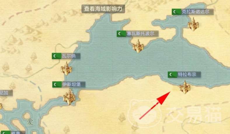 首先小伙伴们打开大地图并寻找特拉布宗的位置,它就在爱琴海的下方。在到达特拉布宗之后,小伙伴们就需要前往饭馆了,而关于饭馆的具体位置,在这里小编也直接帮大家在图片上标注出来了,还是比较好找的,因为它是一个比较显眼的建筑,小伙伴们在进入特拉布宗之后无需费心寻找,基本上是一眼就可以看到的。