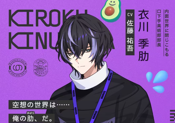 衣川季肋是美术部的部长,长时间都会沉浸于自己的内心世界中,是一个不善言辞的人,同样也是一个高中二年级的学生。