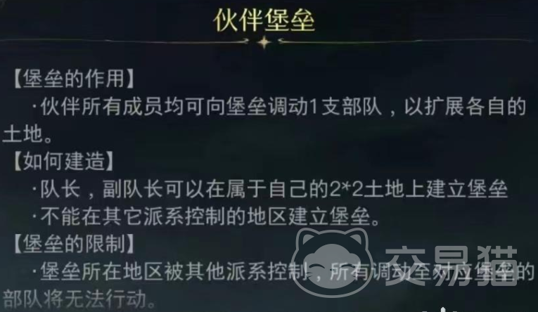 在这款游戏中,伙伴玩法具体指的是小伙伴们在游戏内可以召唤与你志同道合的其他玩家组建成同盟。你们可以通过互帮互助的方式来使得自己的城池以更快的速度建造起来,也可以组队去攻打他人的据点或城堡。并且在升级建筑物的时候,如果得到了伙伴们的助力,那么建造时间也会大大减少哦。
