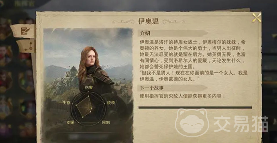 以上内容就是本期小编给大家带来的指环王纷争伊奥温攻略的全部内容了,伊奥温是游戏内生存能力最高的指挥官,并且也有不俗的攻击力,但是统帅能力比较差,可以作为前期重要的战斗力量来排布,兵种方面基本上没有要求,可以说是平民也能入手的指挥官了,希望看完本期内容后小伙伴们可以直接进入到游戏内体验一下哦!