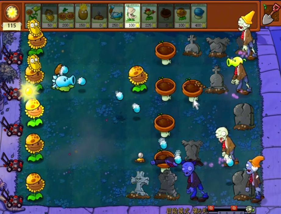 如果中后间有雪橇怪出现大家可以使用土豆雷进行反制,直接将其炸死,在阳光充足的情况下按部就班种植好攻击型植物,这关就能很轻松通关了,通关后大家可以得到墓碑吞噬这个植物。