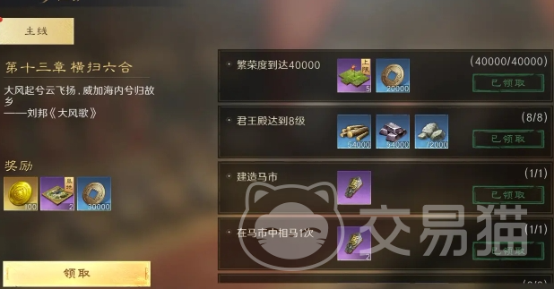 首先,打开游戏,玩家会看到屏幕的左侧有一个任务列表,那里列出了当前章节需要完成的任务。这些任务多种多样,有的需要攻城略地,有的需要发展内政,还有的需要与其他玩家合作。每完成一个任务,都会获得丰厚的奖励,比如资源、铜币等,甚至有可能获得珍贵的道具哦!