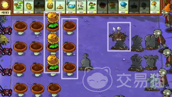 在开局的时候大家优先种植能产出阳光的阳光向日葵和不用花费阳光的小盆菇,哪个冷却好了就点哪个,小盆菇是越多越好,阳光向日葵种植到两排即可保证大家的阳光用量。