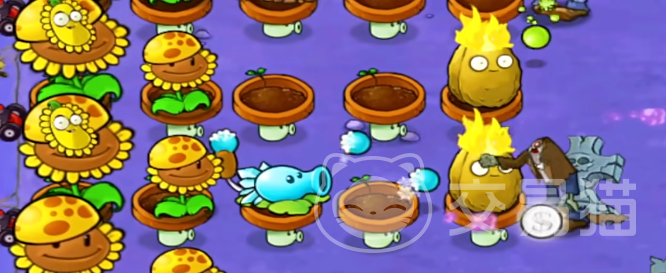 此关一上来会给我们准备了不少的盆栽菇,我们可以用它们的位置来安放其他的植物,同时还可以利用它来帮助我们抵挡一阵敌人。前期主要还是以建造豌豆向日葵和火焰坚果这两个植物为主,所需要的点数不高,还非常的好用。