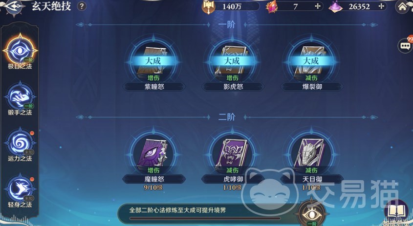 玄天绝技的养成是多线的,不是说只培养一种就可以了,有许多种绝技,每个绝技都可以提升到不同的境界,而每个境界之下还有多个心法可以让玩家来修炼,修炼心法主要是给人物带来一些属性加成,例如增伤、减伤之类的。