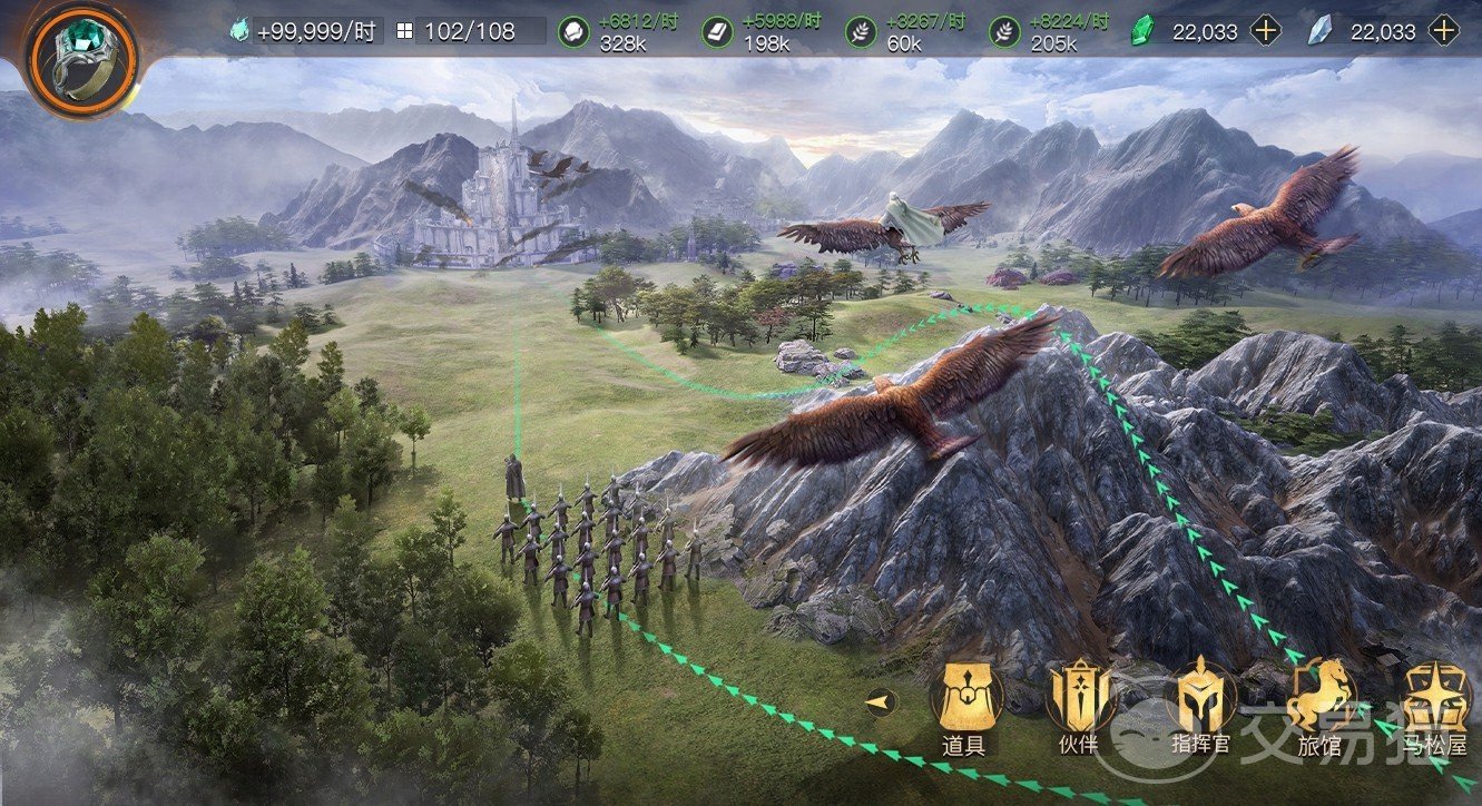 在游戏中,小伙伴们可以结识到在电影里所熟知的人物,并与他们成为并肩作战的伙伴。游戏的开局将会有矮人、精灵和人类三个阵营共小伙伴们选择,如果大家想要体验魔戒的力量,那么直接选择人类阵营加入吧。在游戏的前期,小伙伴们需要通过种植和养殖来储备力量,同时你也需要招兵买马,并将他们训练成一支战斗力强悍的战队
