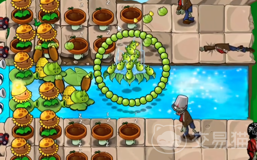 如果大家不放心的话,那在水中也可以留一个格子,这个格子可以给毁灭水草,之后按这么做了,打起这一关来就没压力了,在僵尸刷新少的时候这些远程输出植物是可以无压力清掉僵尸的,多的时候这预留的樱桃辣椒和毁灭水草可以轻松解场。