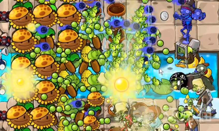 在开始攻略的时候,大家需要先在水上放置好荷叶,然后种上花盆,之后需要在陆地和水中同时种上向日葵,在种好并且有了阳光后大家需要在水上继续种荷叶,不过这次需要种在前面,之后需要在荷叶上种上火焰木桩。