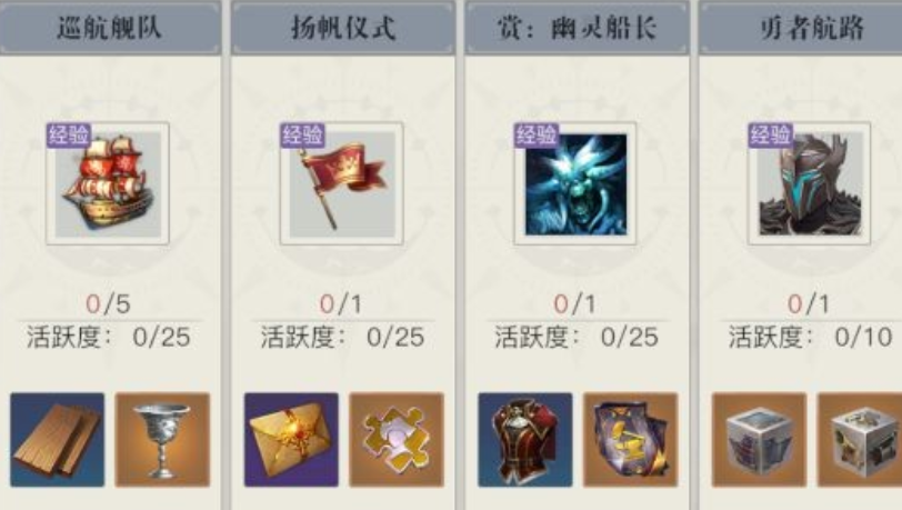 如果每日活动选择组队任务的话,那可以挑战的就比较多了,巡航舰队杨帆仪式,还有难度同样也比较低的幽灵船长,这几个都是比较简单的副本任务,挑战难度更高一些的可以选择勇者航路,巡航舰队需要达到17级,在游戏里要去指定的地点接收任务我参与战斗,其余的也全部都是对战设定,喜欢战斗的可以加上好友一起挑战每天的组队任务。