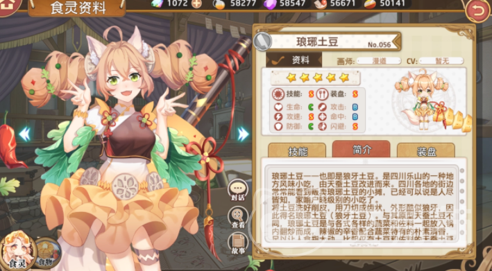 料理次元琅琊土豆介绍就到这里了,角色在游戏里的表现能力还是非常优秀的,我给食灵搭配上花椒,那么攻击起来就没有冷却时间,虽然角色的防御能力比较弱,但是只要攻击力强就能大幅度提高角色的能力。