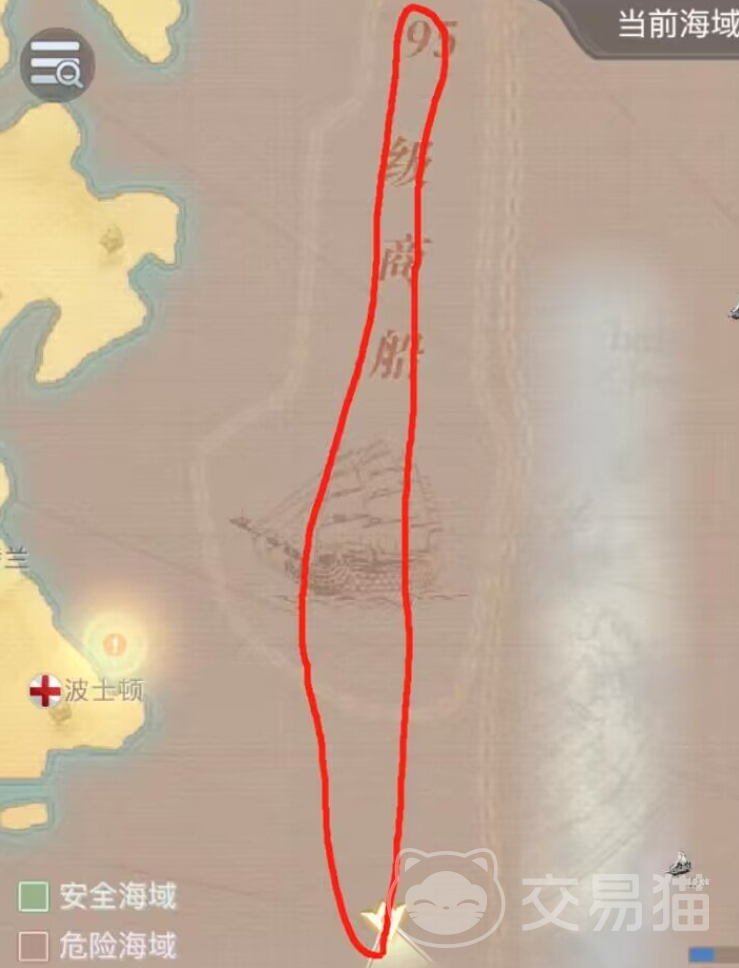 95级的航线主要在北美东岸,这里是有5星商品的,利润很大,跑起来收益还是很可观的,差不多在2000万左右。航线并不难,只有一条,在波士顿区域的右侧,可以逆时针或者顺时针来跑圈,击败商船就可以获取货物了。